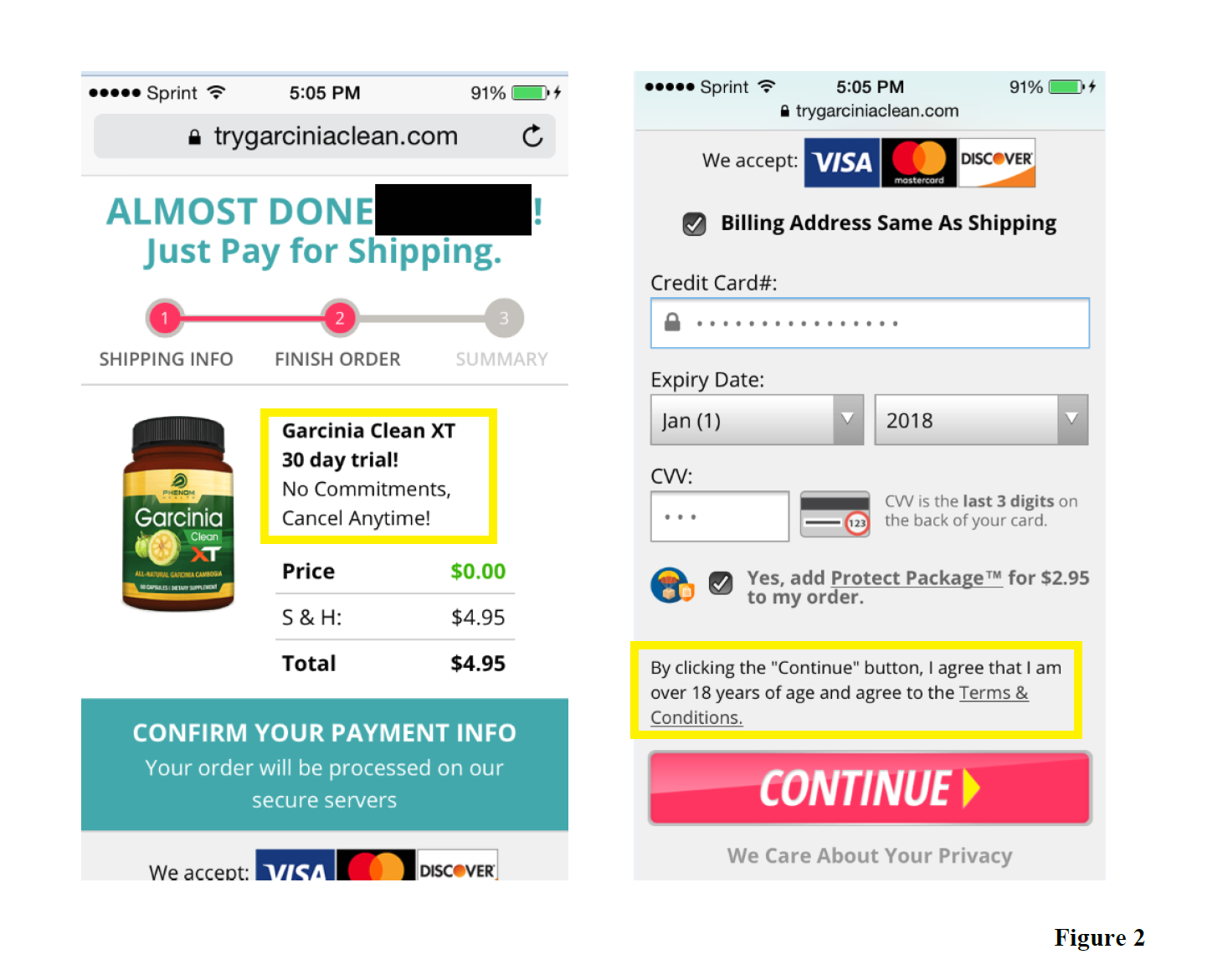 The FTC filed a lawsuit against three business entities (Triangle Media Corporation, Jasper Rain Marketing LLC, and Hardwire Interactive Inc.) and one individual (Brian Phillips) regarding online sales of nutraceuticals. The FTC alleged six counts against the defendants including misrepresentations of the price of the trial offer, misrepresentation that the order is not complete, failure to disclose adequately the material terms of the trial offer, unfairly charging consumers without authorization, violation of ROSCA, and unauthorized debiting from consumers’ accounts. This post will review the main causes of the counts against the defendants – deceptive advertising, the failure to cancel subscriptions, the failure to process refunds.